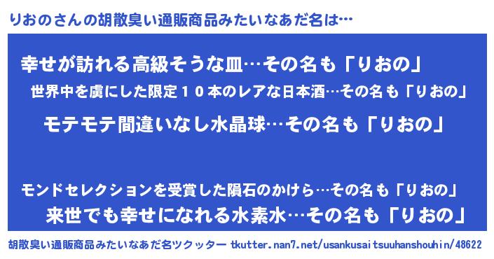 | 男性向けラノベタイトル風あだ名 | 『転生したらりおのだった件』 |