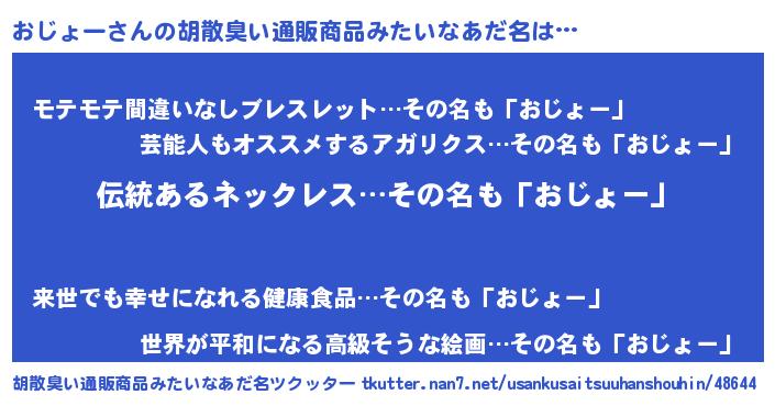 | ヘコむあだ名 | 『おじっぺ』『おじにー』『なまこ酢』 |