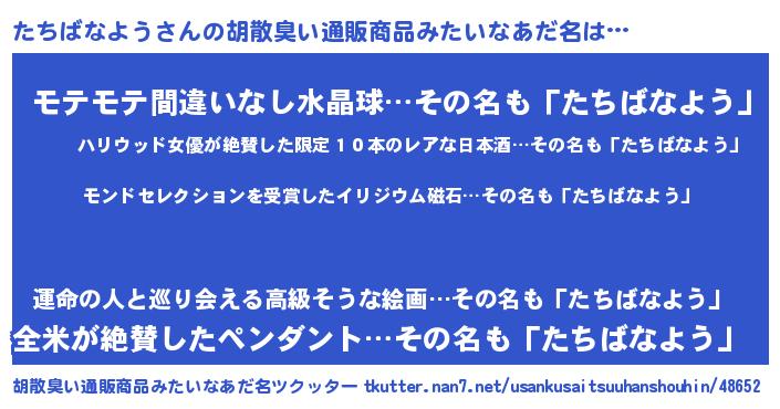| 男性向けラノベタイトル風あだ名 | 『ノーゲーム・ノータチバナヨウ』 |