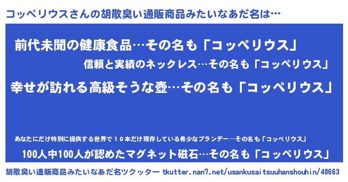 コッペリウスさんの胡散臭い通販商品みたいなあだ名をツクッター!