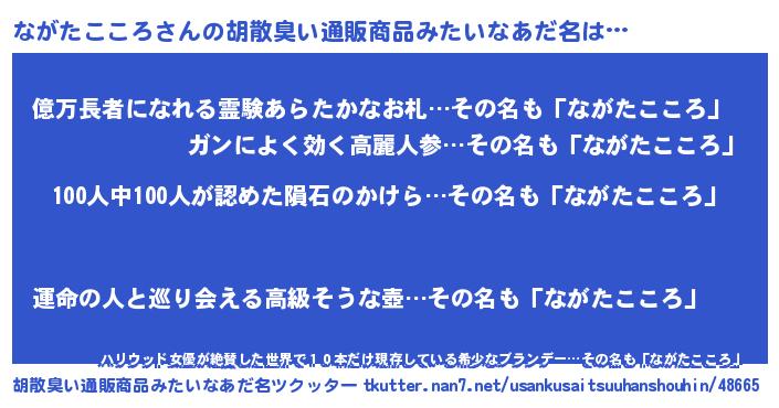 | 男性向けラノベタイトル風あだ名 | 『おまえをオタクにしてやるから、俺をながたこころにしてくれ! 』 |