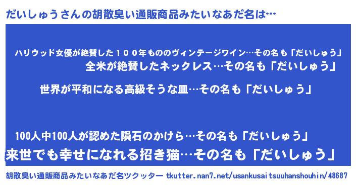 | 意味不明あだ名 | 『だいしゅうフォーエバー』 |