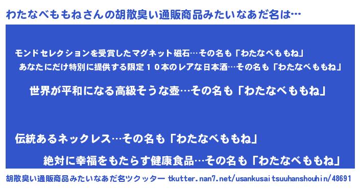 | ヘコむあだ名 | 『豆乳』『わたなべももね(笑)』 |