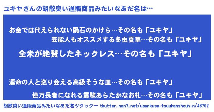 | 意味不明あだ名 | 『とにかく怪しいユキヤ』『自称ユキヤ』 |