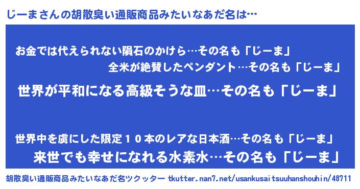 | 意味不明あだ名 | 『じーまフォーエバー』『永久保存じーま』 |