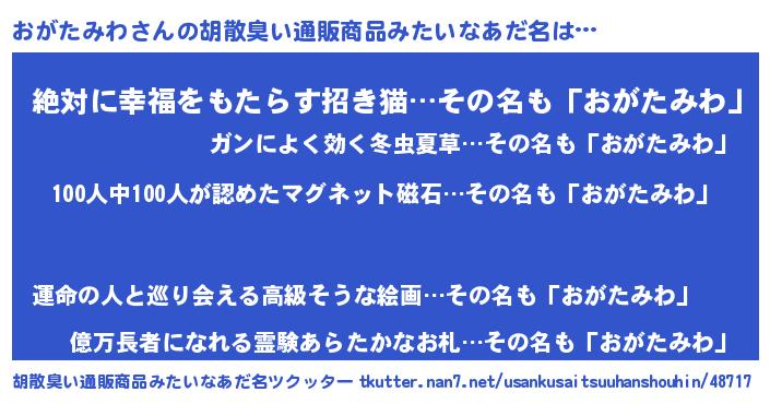 | 肩書あだ名 | 『おがたみわ助教授』『おがたみわ中将』 |