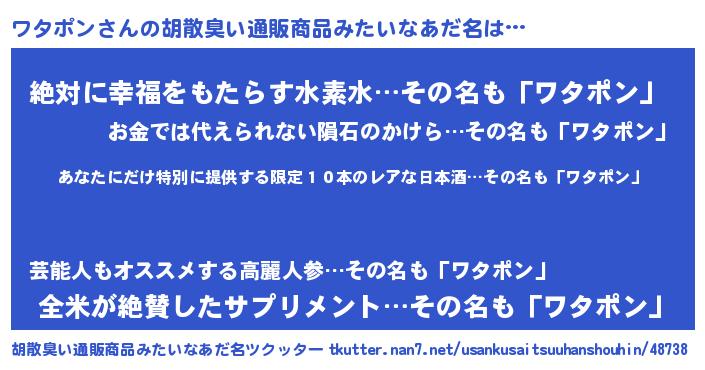 | 意味不明あだ名 | 『住所不定無職ワタポン(43歳)』 |