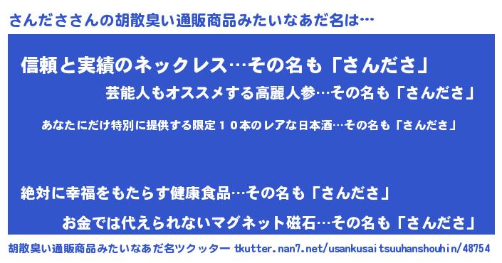 | 意味不明あだ名 | 『住所不定無職さんださ(59歳)』 |