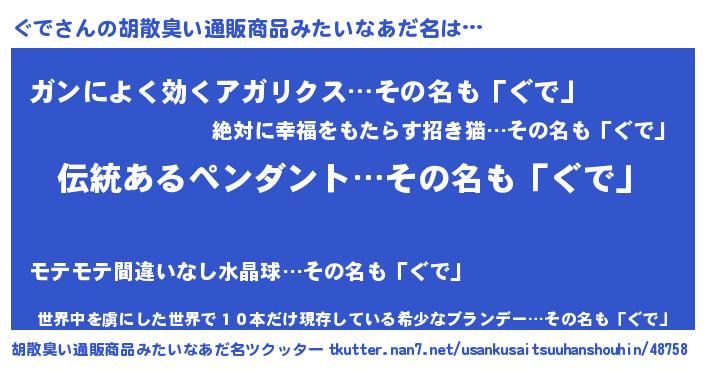 | ヘコむあだ名 | 『ぐでっちょ』『ぐで(笑)』 |
