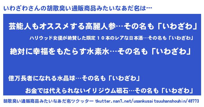 | 意味不明あだ名 | 『永久保存いわざわ』『自称いわざわ』 |