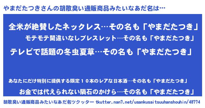 | 意味不明あだ名 | 『自称やまだたつき』 |