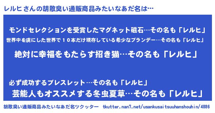 | ヘコむあだ名 | 『レルヒ(笑)』『レルふぇ~』『牛乳』 |