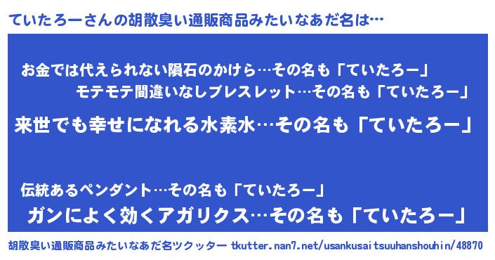 | ヘコむあだ名 | 『ていたろー(遠い目)』『ていっふぃ~』 |