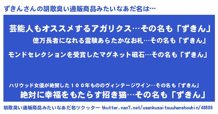 | ヒーロー風カッコイイあだ名 | 『慈愛の使者ずきん』『究極戦士ズキン』 |