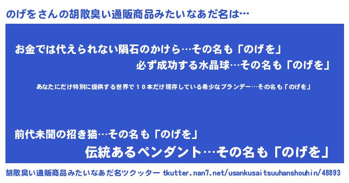 | 意味不明あだ名 | 『住所不定無職のげを(98歳)』 |