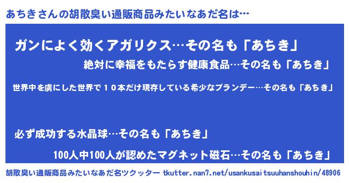 | ヘコむあだ名 | 『あちき(震え声)』『あちにゅー』 |
