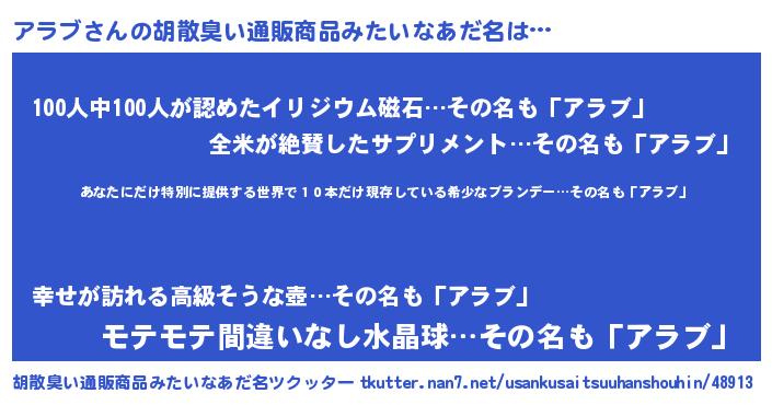 | 意味不明あだ名 | 『住所不定無職アラブ(79歳)』 |