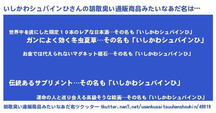 | 意味不明あだ名 | 『眠気覚ましガムいしかわシュバインひ味』 |