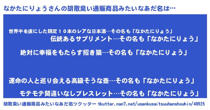 なかたにりょうさんの胡散臭い通販商品みたいなあだ名をツクッター!