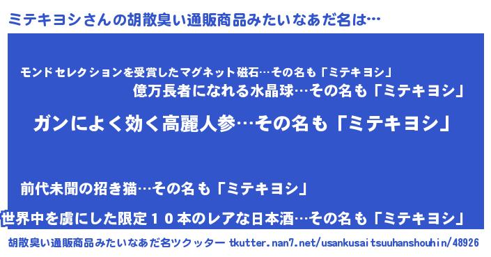 | ヘコむあだ名 | 『ミテにー』『ミテキヨシ(小並感)』 |