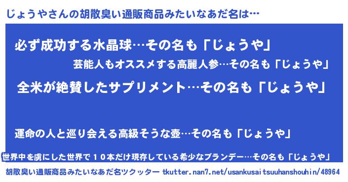 | 意味不明あだ名 | 『とにかく怪しいじょうや』 |