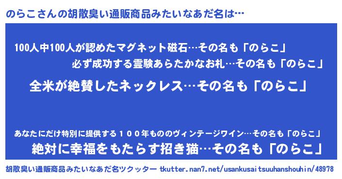 | 意味不明あだ名 | 『とにかく怪しいのらこ』 |