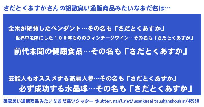 | 意味不明あだ名 | 『永久保存さだとくあすか』 |