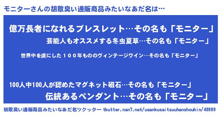 | ヒーロー風カッコイイあだ名 | 『仮面モニダー』『スーパーモニター』 |