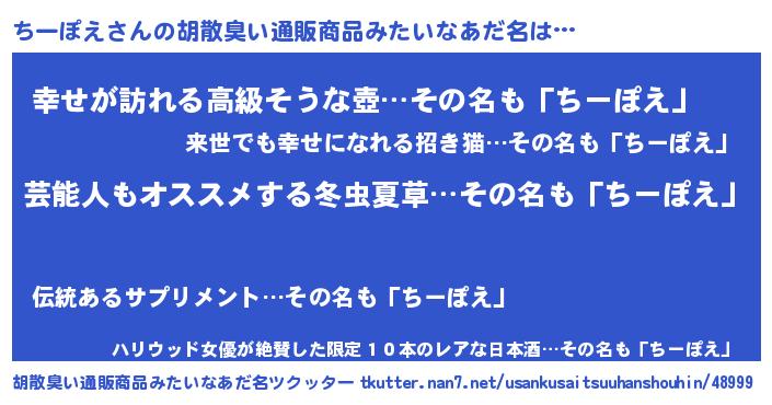 | 男性向けラノベタイトル風あだ名 | 『ちーぽえに滅ぼされるだけの簡単なお仕事です』 |