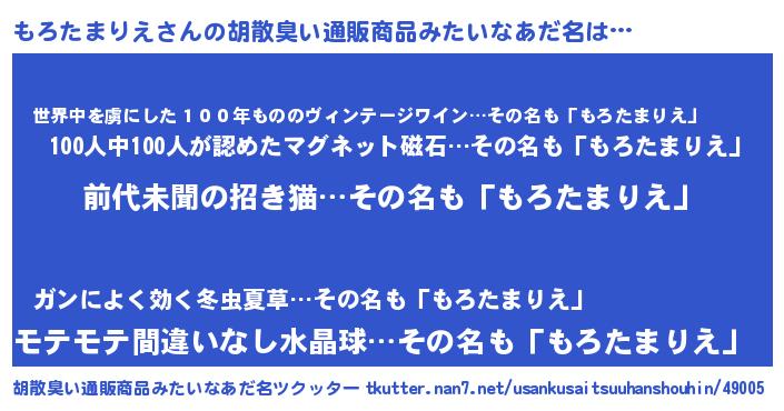 | ヘコむあだ名 | 『もろたまりえ(笑)』『もろふぇ~』 |