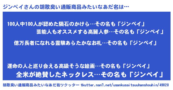 | ヒーロー風カッコイイあだ名 | 『スーパージンペイ』『幻影騎士ジン』 |