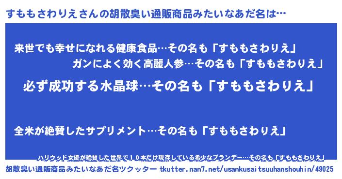 | ヘコむあだ名 | 『すもにゅー』『すももさわりえ(笑)』 |