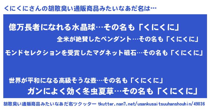 | ヘコむあだ名 | 『くににー』『くにっ子』『豆乳』 |