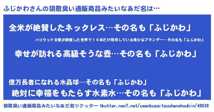 | 意味不明あだ名 | 『ふじかわフォーエバー』 |