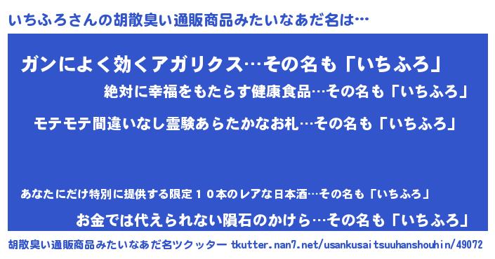 | ヘコむあだ名 | 『いちっふぃ~』『いちふろ(笑)』 |