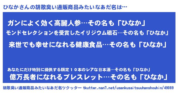 | 男性向けラノベタイトル風あだ名 | 『転生したらひなかだった件』 |