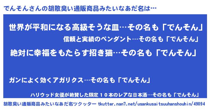 | 意味不明あだ名 | 『永久保存でんそん』 |