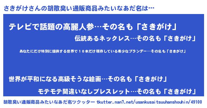 | 意味不明あだ名 | 『住所不定無職さきがけ(98歳)』 |