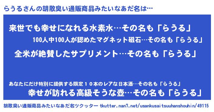 らうるさんの胡散臭い通販商品みたいなあだ名をツクッター!