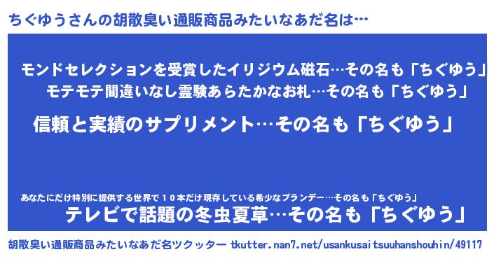 | 意味不明あだ名 | 『とにかく怪しいちぐゆう』 |