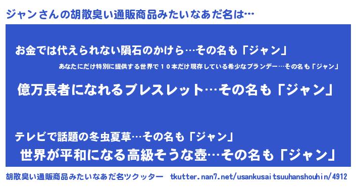 | ヒーロー風カッコイイあだ名 | 『スーパージャン』『愛の使者ジャン』 |