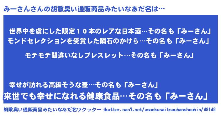 | ヘコむあだ名 | 『みーふぇ~』『みーさん(爆)』 |