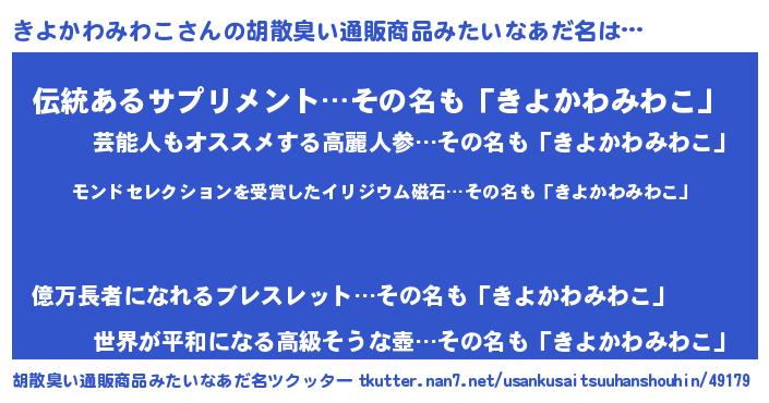 | ヒーロー風カッコイイあだ名 | 『慈愛の使者きよかわみわこ』 |