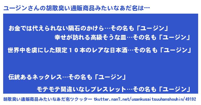 | 欧米人風あだ名 | 『ダレノガレユージン』 |