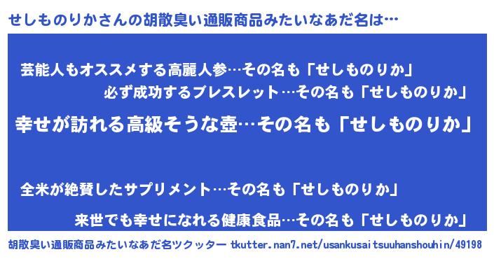 | 意味不明あだ名 | 『せしものりかフォーエバー』 |