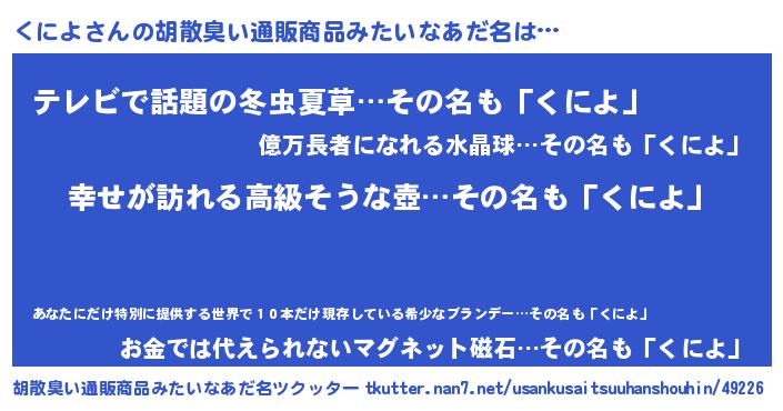 | 意味不明あだ名 | 『くによフォーエバー』『自称くによ』 |