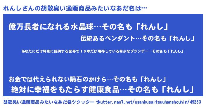 | ヘコむあだ名 | 『れんもー』『れんし(笑)』『牛乳』 |