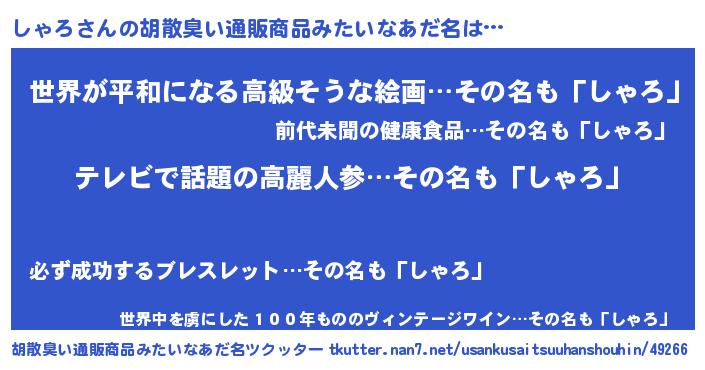 | 意味不明あだ名 | 『自称しゃろ』『しゃろフォーエバー』 |