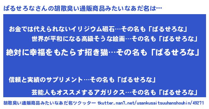 | ヘコむあだ名 | 『ばるせろな(笑)』『なまこ酢』 |