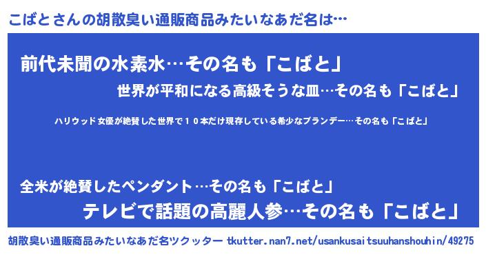 | 意味不明あだ名 | 『住所不定無職こばと(81歳)』『自称こばと』 |